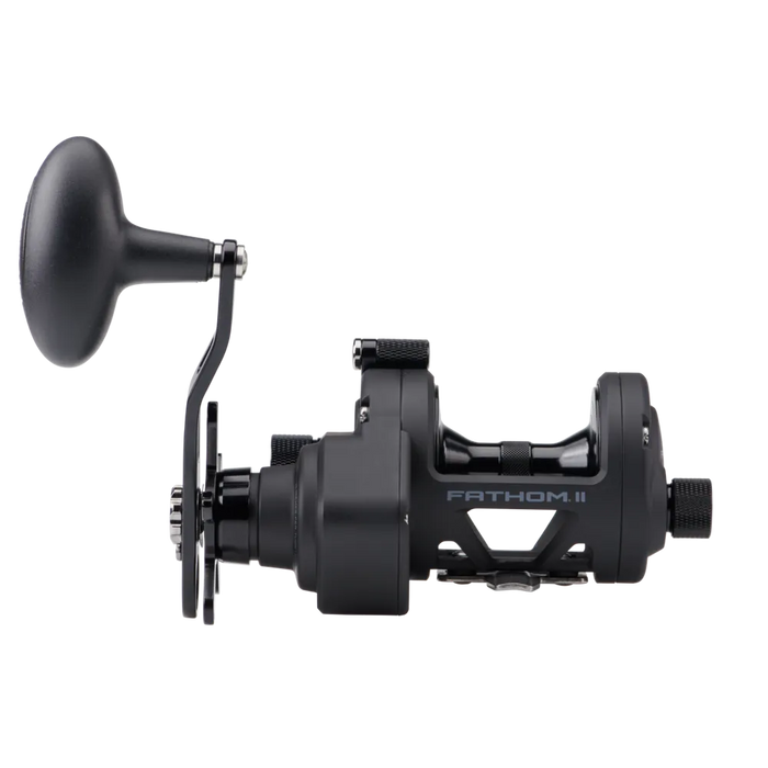 The second generation PENN® Fathom® II star drag reel is built with a rigid metal frame and sideplates, now with added features to make it more angler friendly than ever. Featuring our fast gear access sideplate, any angler can service their gears and HT-100™ drag system quickly and efficiently. The PENN live spindle design offers long, effortless casts, while the power gear ratios (select models only) give ultimate torque for winching up deep fish.