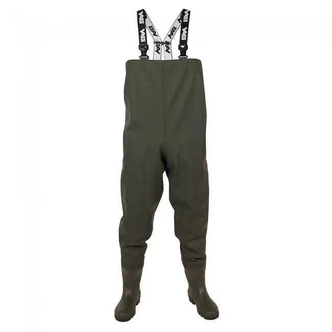 The Vass-Tex 650 series range offers a very high quality wader at fantastic value for money. Features include sturdy PVC boot fused to heavy duty but flexible upper body to ensure reliability and comfort are achieved. An internal pocket and wide elasticated black/white Vass braces are also featured in this wader.