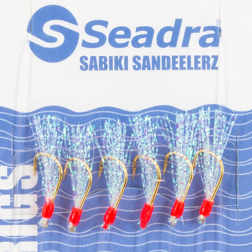 View full detailsSeadra Sabiki Rig Sandeelerz Ultra-Mini Sabiki Lure Red head with flashy tail Very effective for sandeel, mackerel, smelt and launce 6 Lures per s...