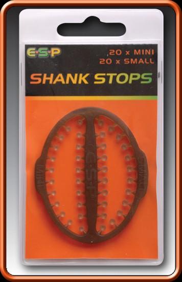 ESP Shank Stops -Designed for any rig that incorporates a sliding ring on the hook shank, ESP Shank Stops are housed on a handy frame that can be stored neatly in the tackle box. No more problems trying to extract a tiny stop from a flip top box! -The frame contains 40 stops, 20 of each mini and small. The mini stops are perfect for hook sizes 8 and 10 whilst the small are best suited to larger hooks. -Moulded in a soft, clingy material in a conical shape, the holes at each end do not quite meet in the middle, leaving a central membrane which is pierced by the hook point resulting in a secure, tight fit on the hook shank which will not slip on the cast and therefore requires no gluing.
