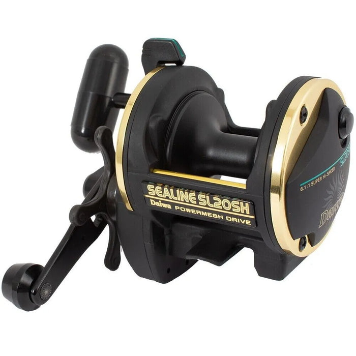 The Daiwa Sealine SL20SH with its High-speed gearing they are excellent for all shore work, especially where the ground is rough and kelp beds prevail. All styles boat work including uptiding for powerful rays and fast tope are well within their brief.Incredibly strong, the SLOSH's deliver remarkable smoothness via their multi washer drag.