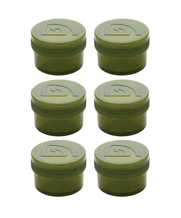 Our Half-Size Glug Pots are just that – half the size of our standard Glug Pots! At just 5cm in height, they are perfect for keeping hookbaits in, and the leak-resistant design means that you can keep those hookbaits glugged-up without fear of the contents leeching out and making a mess of your carryall!
