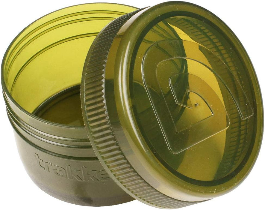 These Half-Size Glug Pots are also ideal for storing tea/coffee/sugar etc., and for those who like to try and keep everything as compact as possible, two pots can be stored neatly inside one of our Plastic Cups, which come supplied with our NXG Brew Kit and NXG Deluxe Food Set, or can be purchased individually from Trakker retailers.
